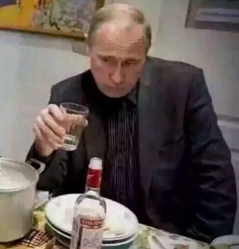 普京一个人喝闷酒的照片,看得出来普京心情不好,毕竟国际烦心事太多了,喝的一瓶伏特加脸色有些许醉意。