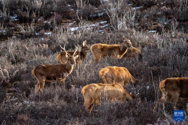 2023年11月发布的《新时代党的治藏方略的实践及其历史性成就》白皮书提到,曾被国际社会认为已绝种的西藏马鹿“失而复得”,由发现时的200余头增长到800余头。 新华社记者 旦增尼玛曲珠 摄
