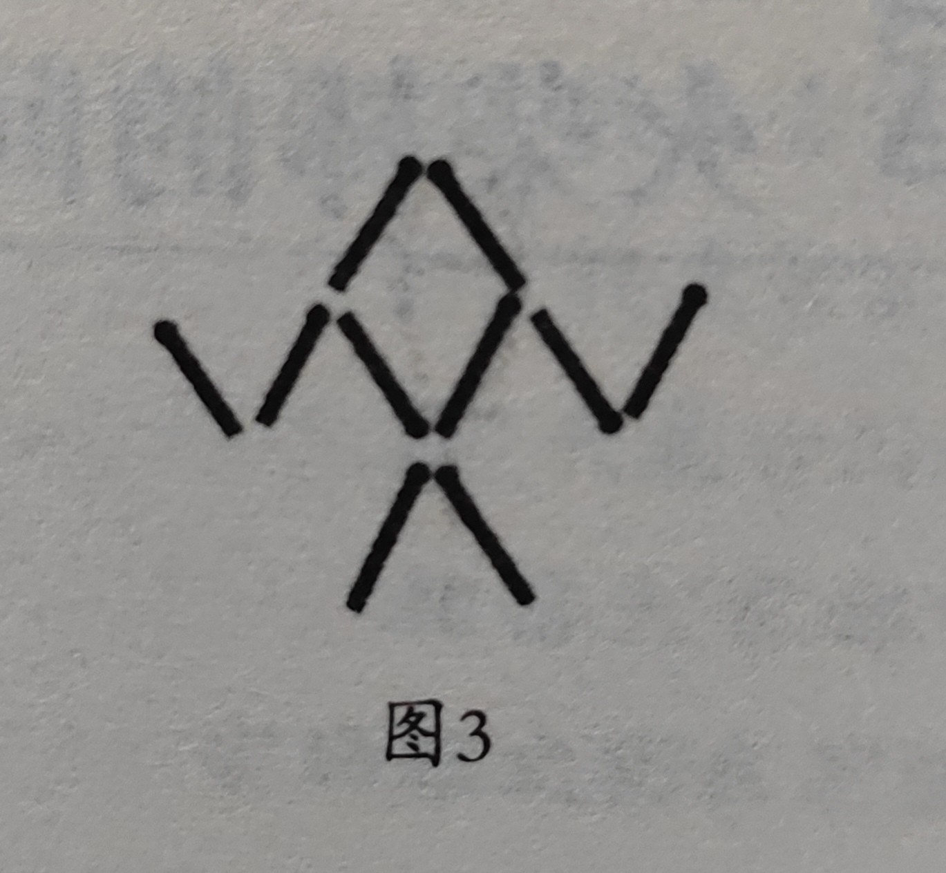 如图3所示,用火柴棒可以摆成一个向上爬的龙虾,现在我们移动其中3根火柴棒,试着将向上爬的龙虾变成向下爬的样子。