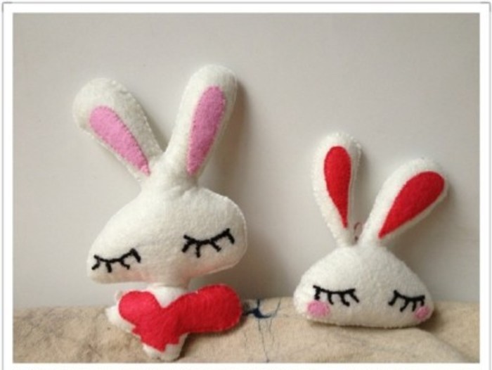 喜欢小兔子的快点集合,这款手工布艺我们要制作十分可爱的小兔子抱枕玩偶。第一张图片上有两款,一张是只有兔子的头部,另一个是一个完整的小兔子的造型,好抱着一个可爱的小爱心。