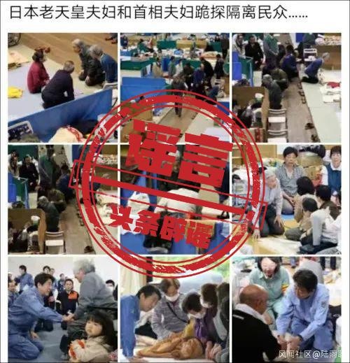 谣言:明仁天皇夫妇和安倍夫妇跪探隔离民众
