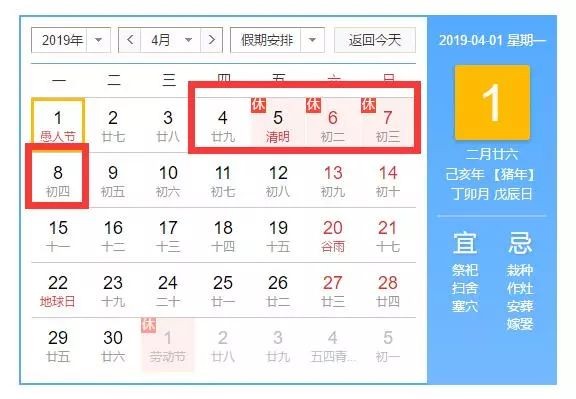 因清明节放假时间为4月5日~7日,农历三月三为4月7日(周日),与清明节放假时间重叠,为营造我区“壮族三月三”良好节日气氛,本自治区内4月4日、8日放假调休,即“壮族三月三”和清明节放假时间为4月4日至4月8日。