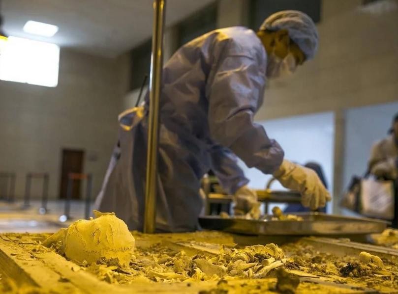 在火化之后,依旧会有一些骨头碎屑,后期工作人员会用小木锤等工具将其敲碎,或者用专业仪器将其碾成粉末状。
