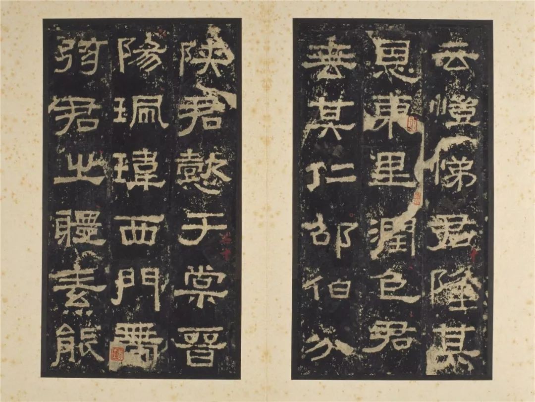 《张迁碑》在章法方面采取的是有行有列,字距大于行距的布白方式,于整饬中见错落变化。其细微差异多因结体方式而存在。