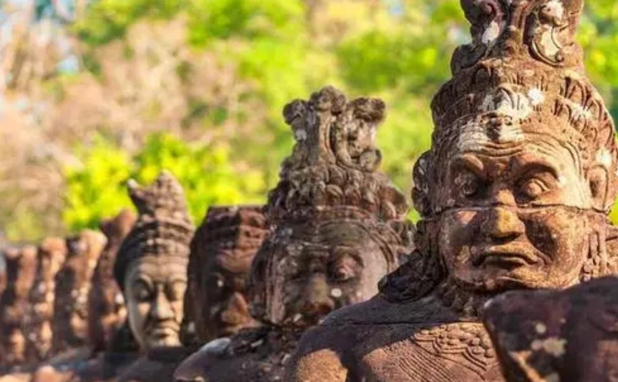 不过由于占城人的入侵导致都城毁于战火,后经过阇耶跋摩七世的重建,并且加高城墙、在城外挖掘护城河、在城中放置佛教观音菩萨的雕像。这样更加坚固,更加体现国王的威严和神圣之感。