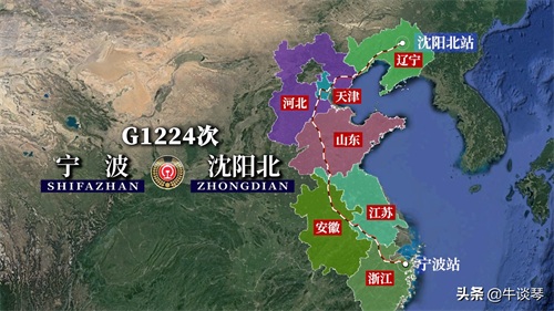 G1224次列车运行线路图:浙江宁波开往辽宁沈阳北,全程2000公里