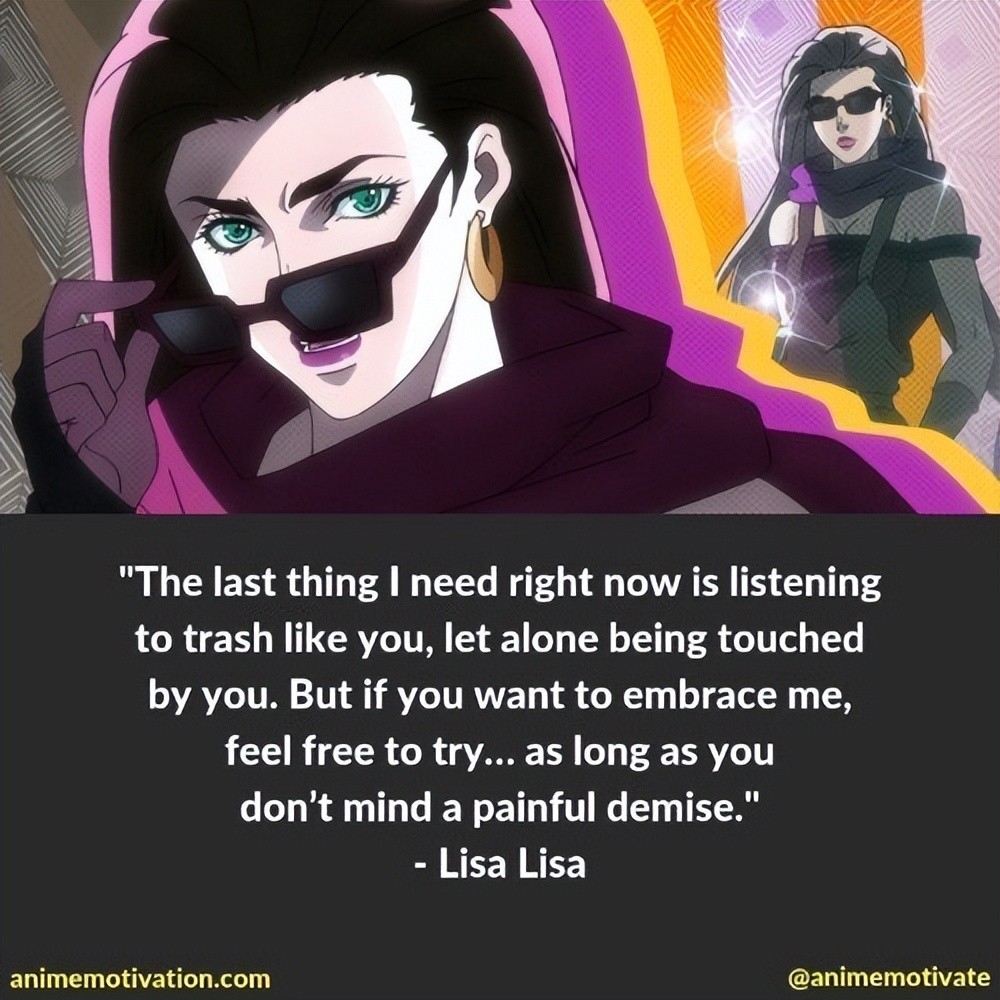 “我现在最不需要的就是听你这样的垃圾,更不用说被你感动了。 但如果你想拥抱我,尽管尝试……只要你不介意痛苦的死去。” – 丽莎丽莎
