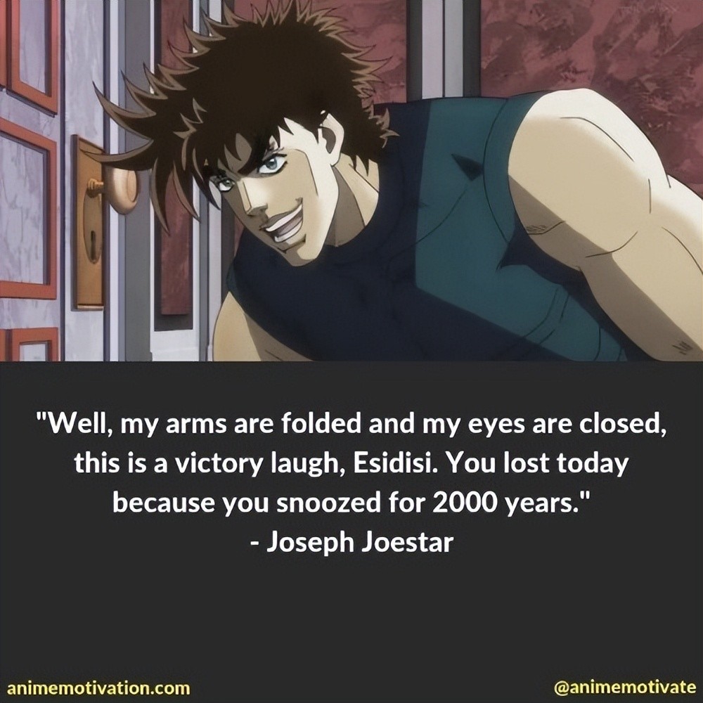 “好吧,我双臂交叉,双眼紧闭,这是胜利的笑声,Esidisi。 你今天输了,因为你睡了 2000 年。” ——约瑟夫·乔斯达
