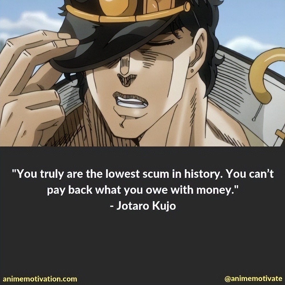 “你真是史上最低贱的人间之屑。 你不能用你所欠的来偿还钱” ——九条承太郎