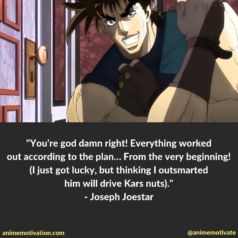 “你他妈的是对的! 一切都按照计划进行……从一开始! (我只是很幸运,但认为我比他聪明会让 Kars 发疯)。” ——约瑟夫·乔斯达