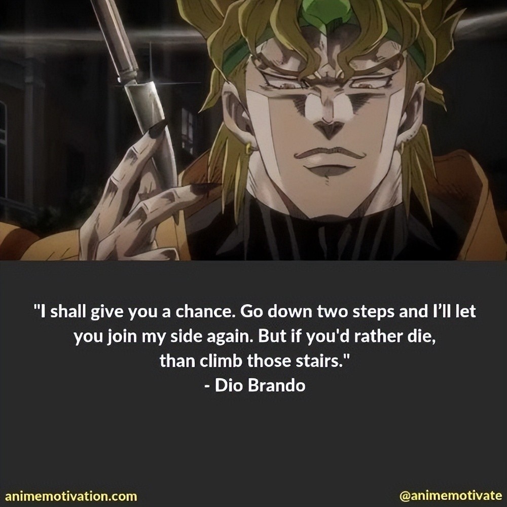 “我给你一个机会。 往下走两步,我会让你重新加入我的身边。 但如果你宁愿死,也不愿爬那些楼梯。” – 迪奥