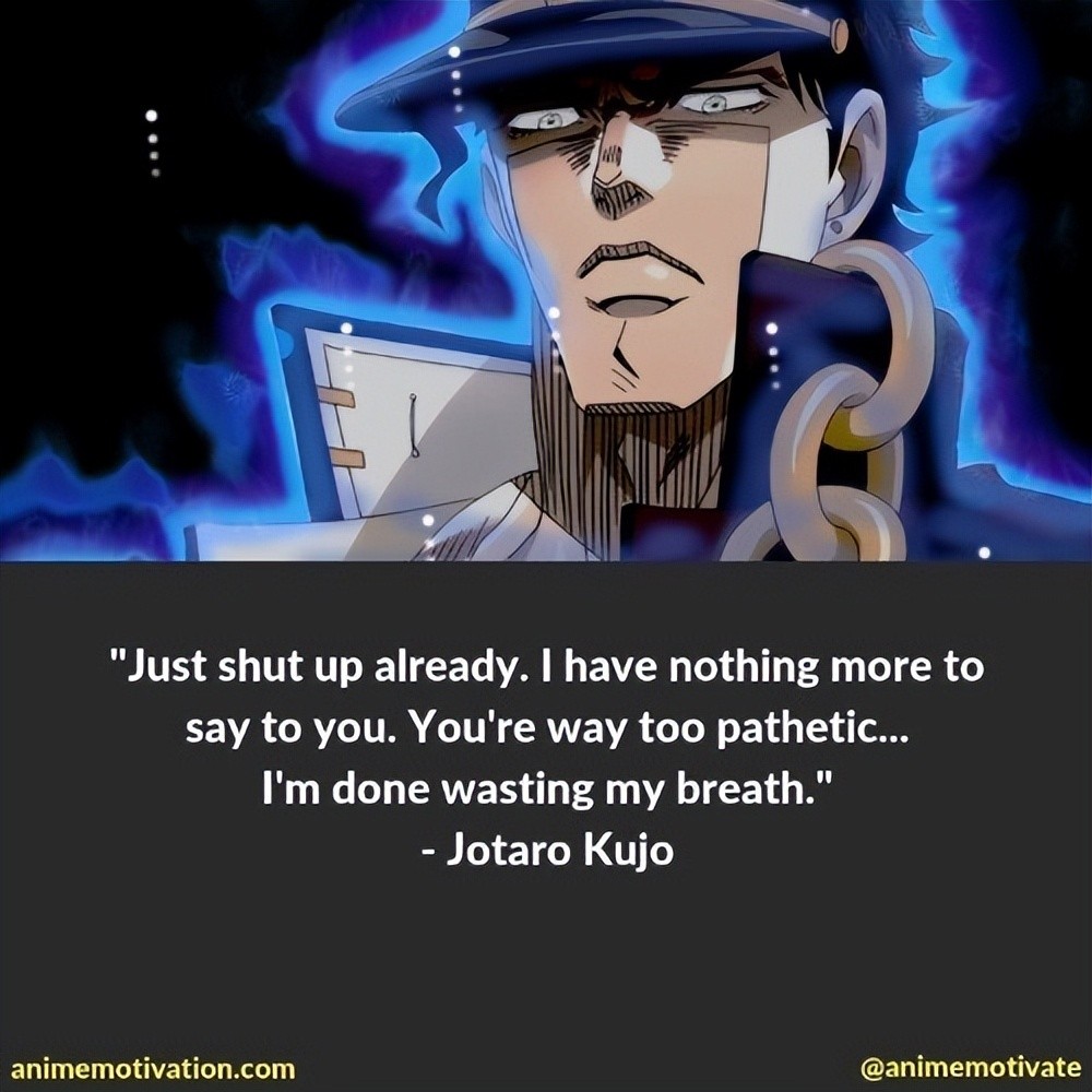 “闭嘴吧。 我无话可说。 你太可怜了……我已经白费口舌了。” ——九条承太郎