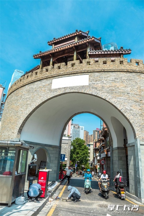 如今,时隔百年,从解放路与建湘路交会处往北行数十米,城墙高耸、城楼巍峨,飞檐翘角、青砖黛瓦,闹市间,一座高约20米的巍峨城门格外引人注目,巍峨的浏阳门城门再次重现,也让老街韵味更加浓厚。