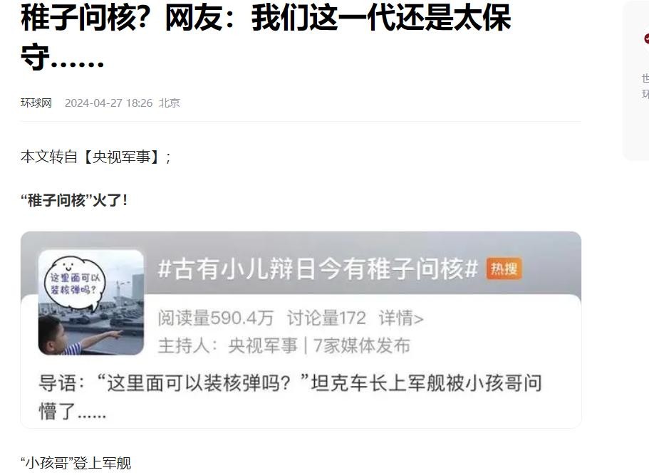 环球网:《稚子问核?网友:我们这一代还是太保守……》发布时间:2024.04.27