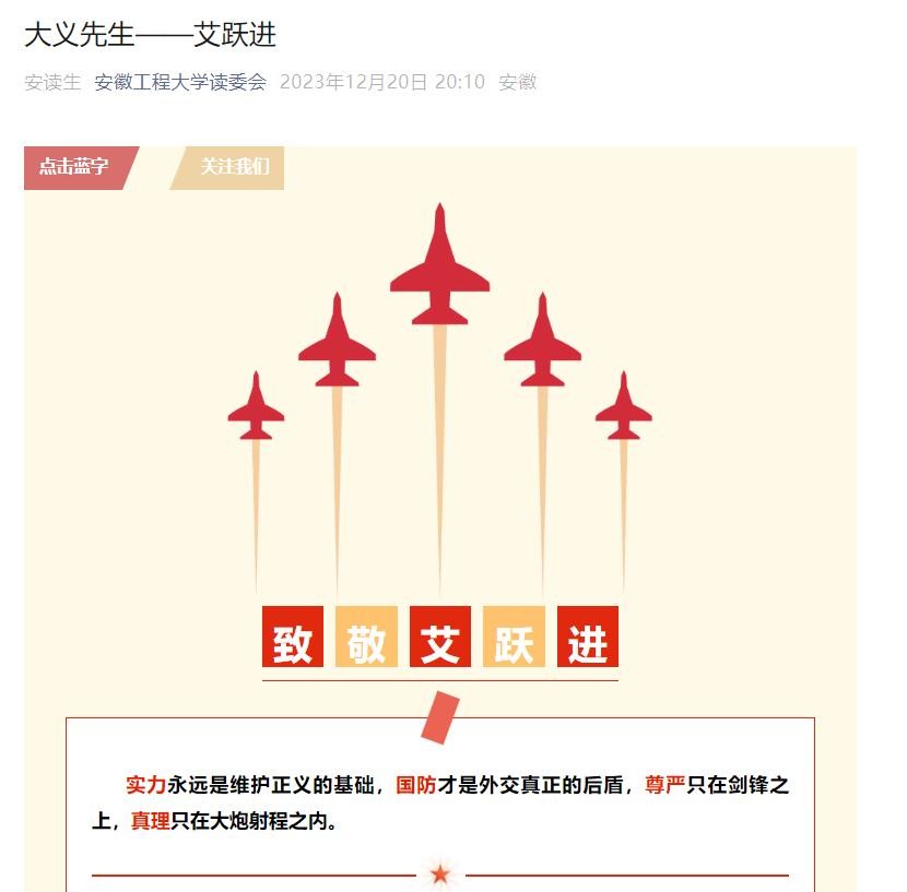安徽工程大学读委会:《大义先生--艾跃进教授》发布时间:2023.12.20