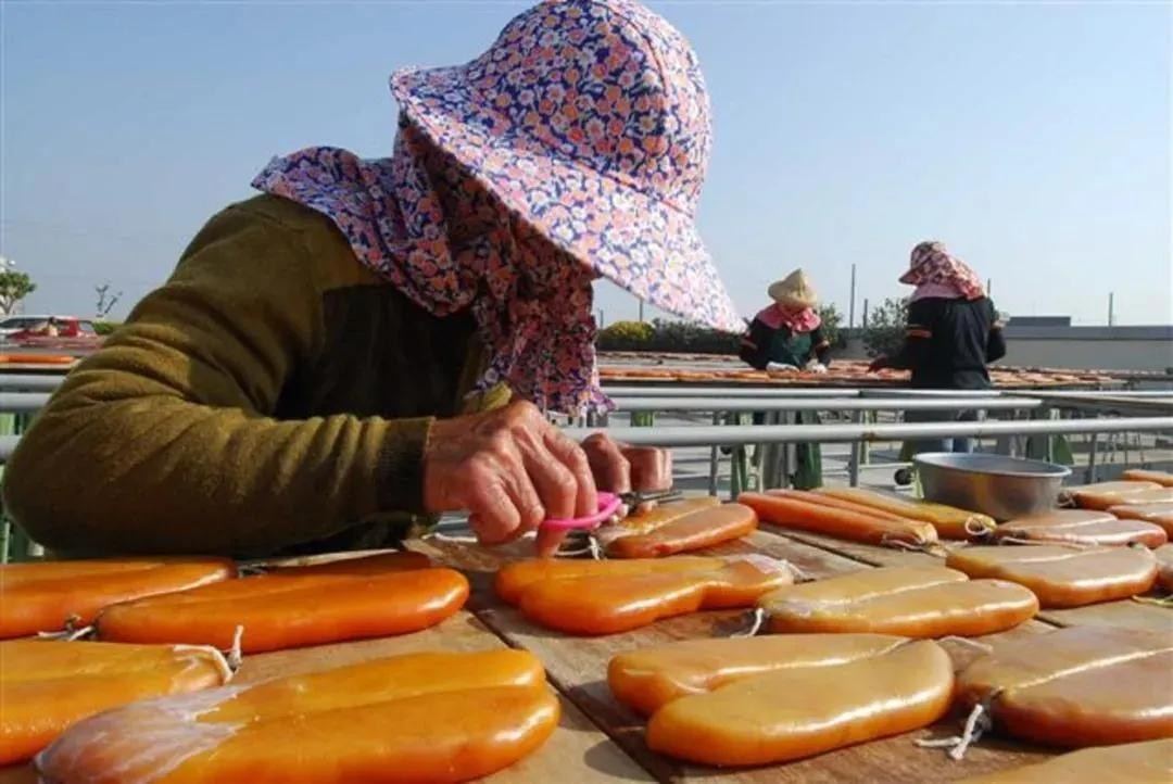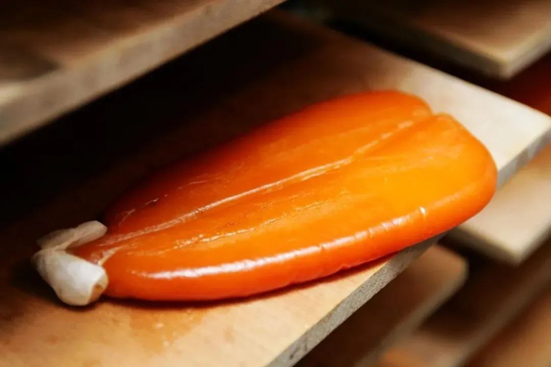 而且只有成长了3-4年的乌鱼。才能长出硕大肥美的乌鱼子。在腌制脱水晾晒中,每天要经过十多次的手动翻面,几百次的按捏,最终成为优质乌鱼子成品。