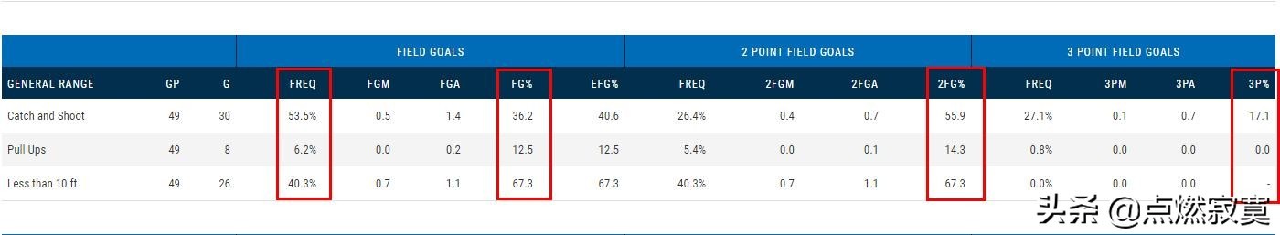 戈加-比塔泽本赛季的出手分布及命中率