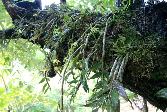 目前,人工铁皮石斛的栽培,主要仿照铁皮石斛自然生长环境进行。利用树木枝叶遮阴,将经过育苗后的铁皮石斛,移栽到杉木、核桃、板栗、马尾松、云南松等树干、树枝、树杈上。