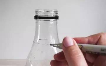 用笔在饮料瓶口画好需要裁剪的位置
