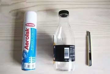 工具原料:白色喷漆、饮料瓶、刀子
