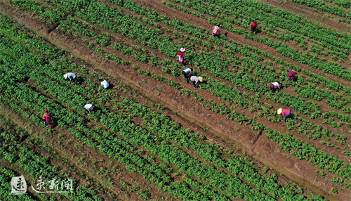 8月21日,沭阳县吴集镇范赵村一片大豆地里,村民正在采收豆丹。