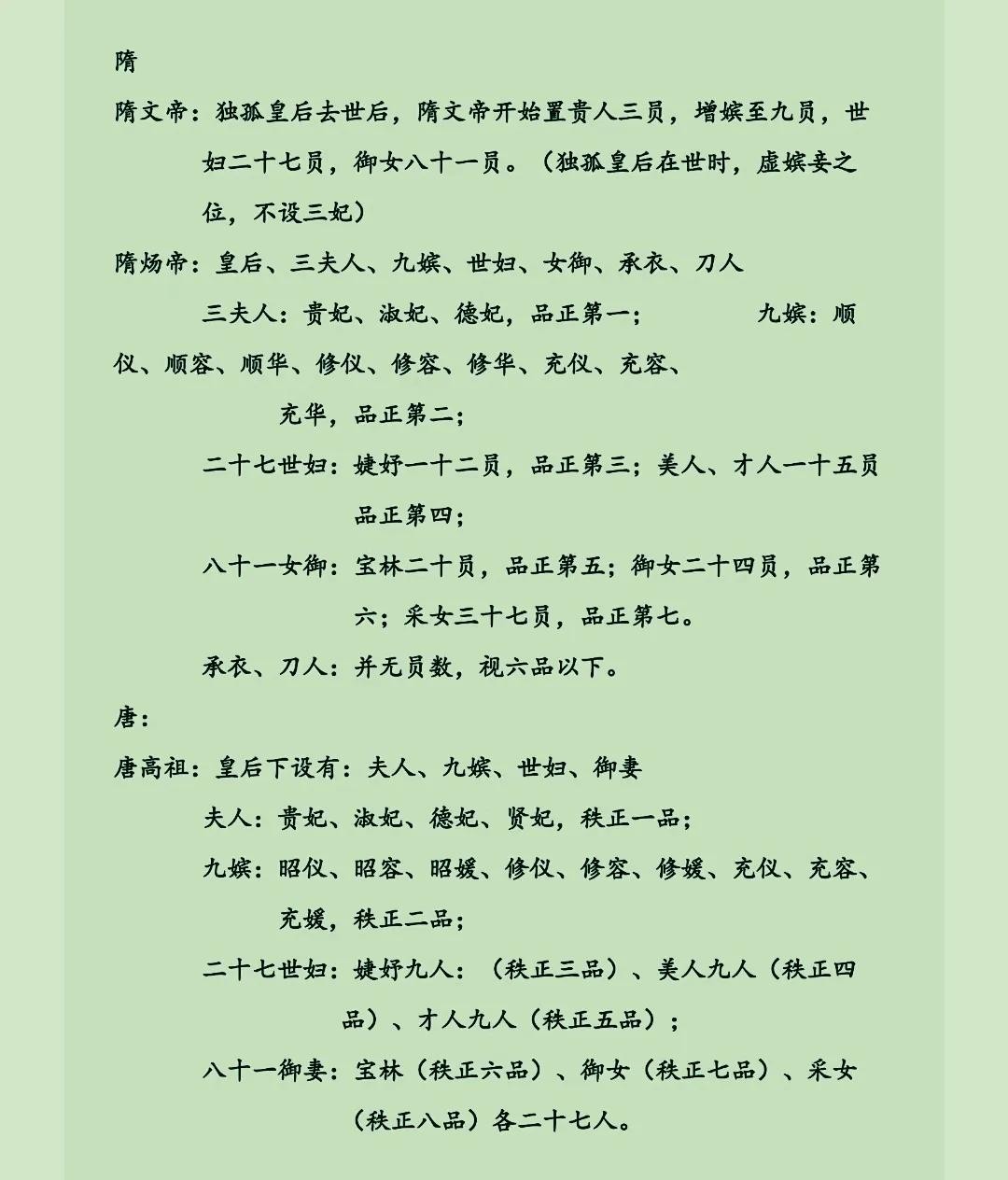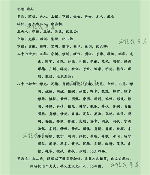 历代后宫妃嫔等级制度整理