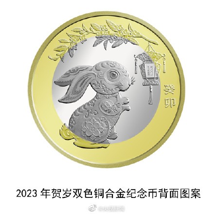 中国人民银行定于12月22日起陆续发行2023年贺岁纪念币一套。纪念币共3枚:金质纪念币,银质纪念币和双色铜合金纪念币。金银纪念币背面为“福”字、舞狮造型等;双色铜合金纪念币背面为中国传统剪纸艺术与装饰年画元素相结合的兔子形象,还有花灯和桂花