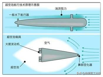 超空泡是一种奇特的物理现象。随着鱼雷等水下物体在水中运动速度的加快,其上所承受的水压反而会减小,一旦水压减小到一定程度时,与水下物体接触的水就会汽化,形成空泡。这些空泡不但会改变水的流动形态,而且会降低螺旋桨或喷水推进器的推进效率,并发生爆裂产生强烈冲击,大大缩短水下物体的使用寿命。但是令人奇怪的是,随着速度进一步提高,当水中航行物的运动速度超过50米/秒时,航行物体表面就会出现“超空泡”现象,即在其后部形成水蒸气泡。