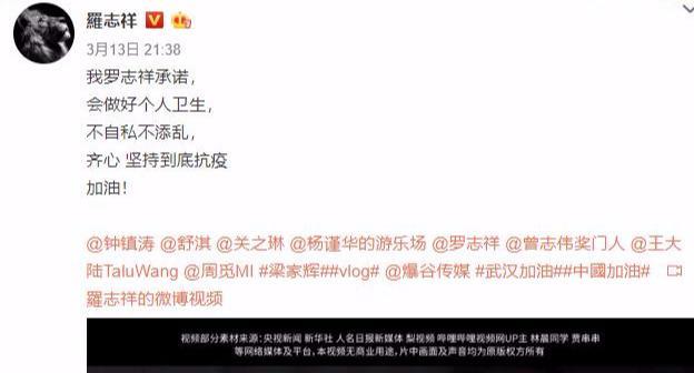 但是这些话又好像有弦外之音,他写道:我罗志祥在这里承诺,会做好自己的卫生,不因为自己给社会添麻烦,大家齐心协力,共同做好抗疫工作,加油。