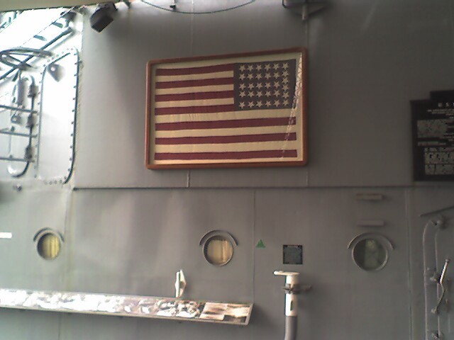 下面这个美国国旗是1853年美国海军准将佩里轰开日本国门时率领的黑船上悬挂的国旗,是31个星星的版本,一直保存在美国海军学院博物馆,后来被公牛哈尔西在1945年9月12日又用来恶心了日本人一次,派人从美国空运到东京湾上的密苏里号战列舰代表美国受降,所以日本人投降时战列舰上是飘着两面美国国旗的,一面是31星版本,一面是48星版本。