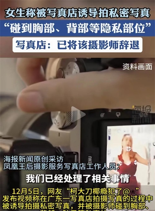 在咱们这个社会,有些事真是让人目瞪口呆的。最近在广东某城市发生的一件事,让大家都坐不住了。一位年轻的小姑娘,去影楼拍个写真,结果竟然被摄影师给诱导拍了些私密的东西,还被他触碰到隐私部位。这事情一曝光,立马引起了轩然大波,不少人对此气愤填膺,纷纷探讨起隐藏在这背后的隐私保护和职业道德的问题。