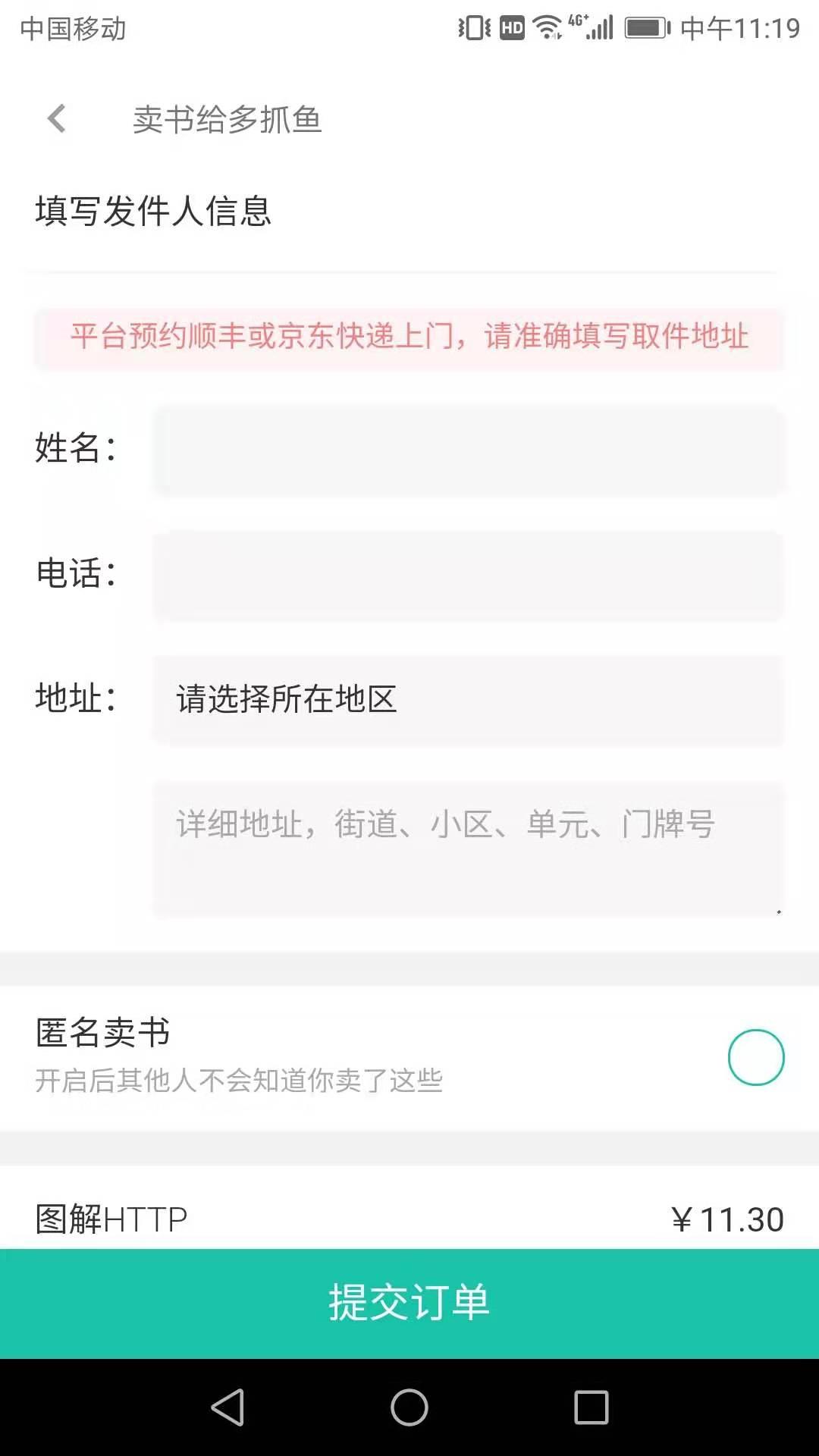 点击下一步---》点击下单---》填写邮寄人的地址---》提交订单完成交易----》等待上门取件---》收到卖书的钱---》高兴,哈哈