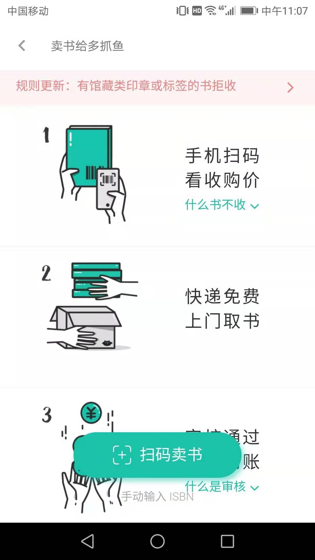应用商店下载多抓鱼---》注册---》卖书---》扫描卖书