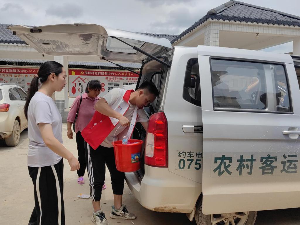 上午 9 时,参加紧急转运的粤运快车陆续到达江湾镇围坪村党群服务中心广场,韶关粤运志愿者配合镇村干部,有序组织村民分批登车撤离。