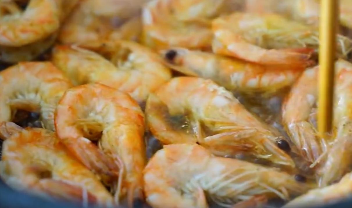 4、 锅中倒入少许油,把腌制好的虾全部倒入锅中,煎至变色。