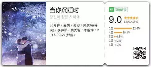 《当你沉睡时》在9月27日晚开播,播出了一、二集。两位人气主演的完美搭配让收视创好,据韩国收视率调查公司调查数据显示,《当你沉睡时》创下7.2%和9.2%的收视率,可以说首播就获得了开门红。而在中国,豆瓣的评分也相当不错,可见《当你沉睡时》还是比较符合观众和粉丝对这部剧的期待值的。