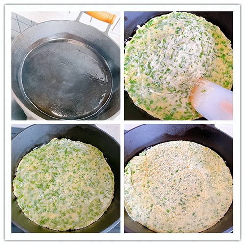 1、煎韭菜薄饼的油不用特别多,少油煎出来的薄饼吃着更健康;