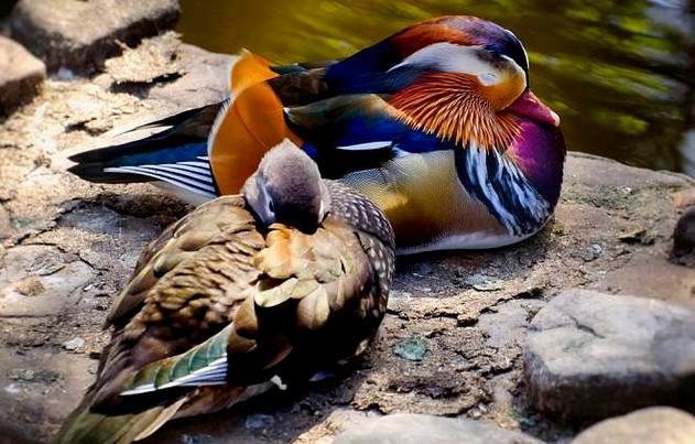 但是,鸳鸯真的是人们想象的那样对伴侣忠贞不渝吗?实际上他们并非完全的一夫一妻制,而只是在恋爱的时候寸步不离,一旦雌鸟产卵,雄鸟就会离开雌鸟出去寻欢作乐。