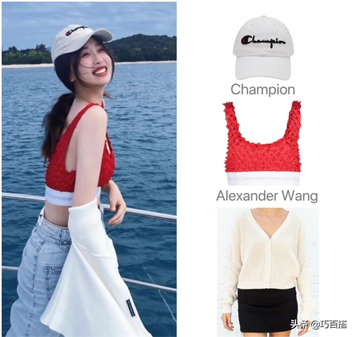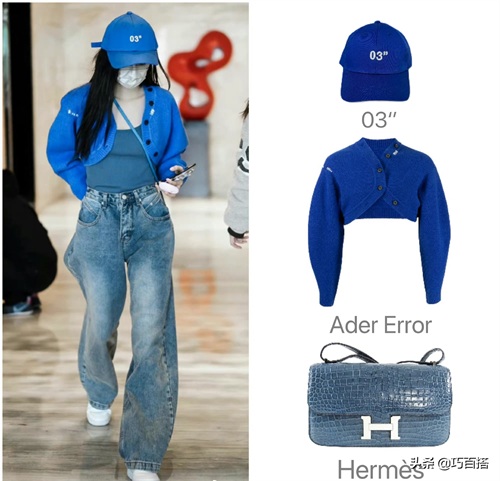 在另外一套搭配中,吴宣仪还选择了超高腰线的设计,这一点对于修饰身材非常重要。但,很少有人知道,其实鸭舌帽也可以让人显高。