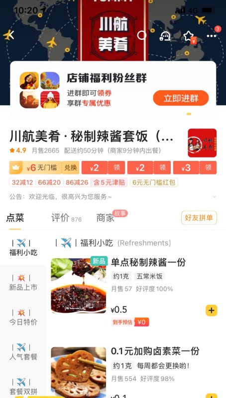 不过记者发现,近日,给川航提供餐食的四川航空汉莎食品有限公司在外卖平台开放了订餐服务,可点外卖送到家了。打开外卖平台——川航美肴餐厅,目前在售的有兔腿饭、鸡腿饭、小龙虾盖饭等套餐和特餐是应有尽有,配送的餐具包装和飞机上的几乎一模一样,连“老干妈”也都是每餐配备的,价格从十几元到二十几元不等。