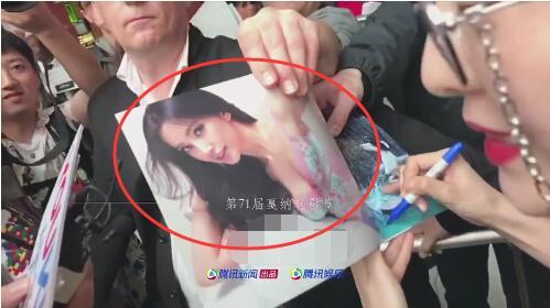 一位中年大叔级别的外国粉丝,拿着一张李冰冰的照片就直接递到了范冰冰的跟前,要求签名。刚开始范冰冰还没反应过来,正准备动笔,定睛一看,这不是自己的照片呀!反应过来的她,露出尴尬而不是礼貌的微笑,拒绝了面前这位一脸认真严肃的国外男粉的签名要求。