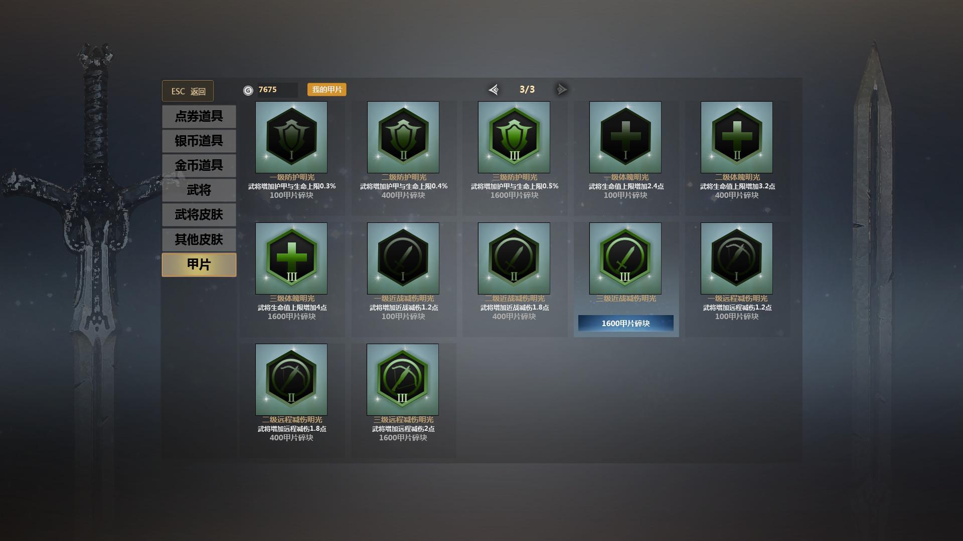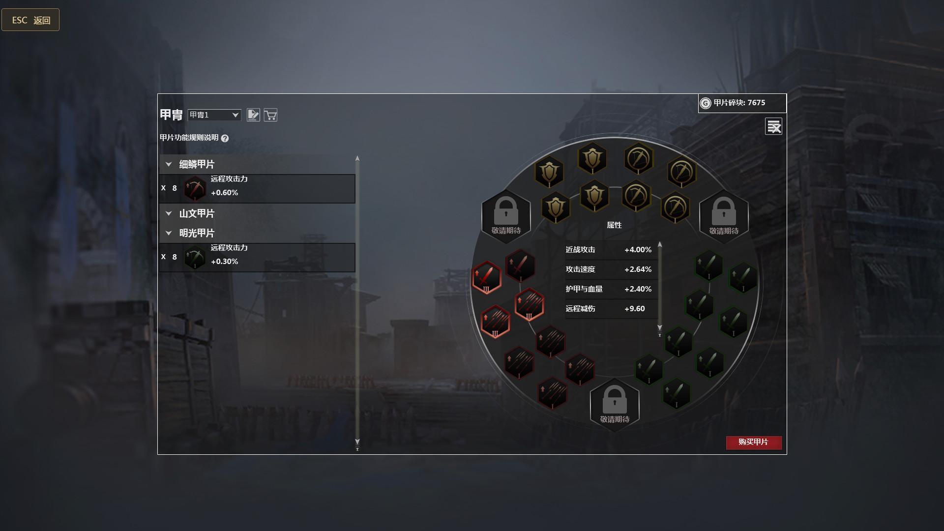 甲片的获取不需要购买,当然如果你想快速拥有可以去商城购买,每次参与军团战,人机战以及活动团战斗可以获取。甲片分近近战、远战,搭配时自己可看好了,甲片系统所在位置游戏首页的军团备战里面,还没有搞好的小伙伴们抓紧哦。