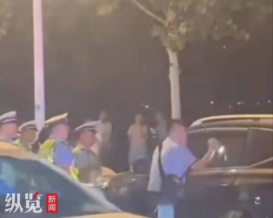交警向车内人员喊话。(来源 / 视频截图)