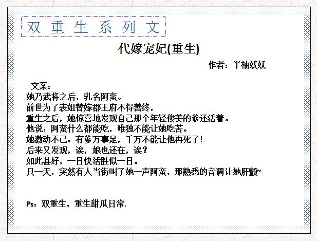3、《代嫁宠妃(重生)》 by 半袖妖妖