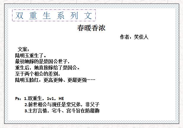 精彩分享8本男女主双重生系列文,《春暖香浓》《吾家妻贵》超赞