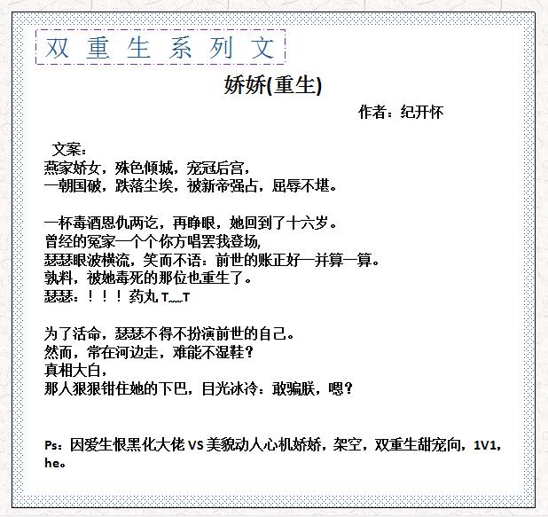 6、《娇娇(重生)》 by 纪开怀