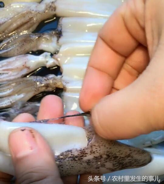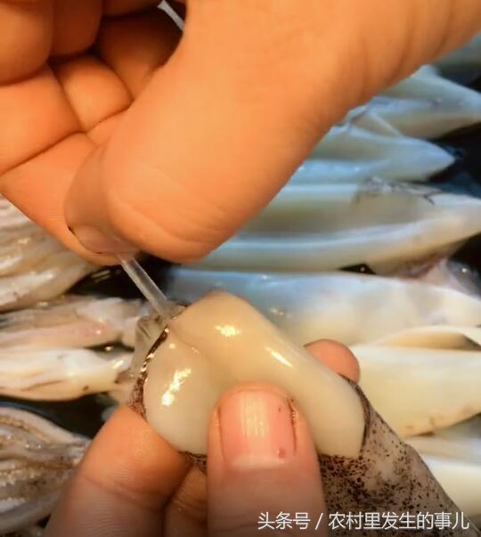 第二步是把眼睛给挤掉,这是很重要的一步,否则会弄得海兔子黑乎乎的。