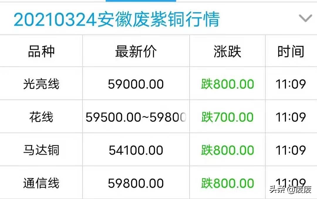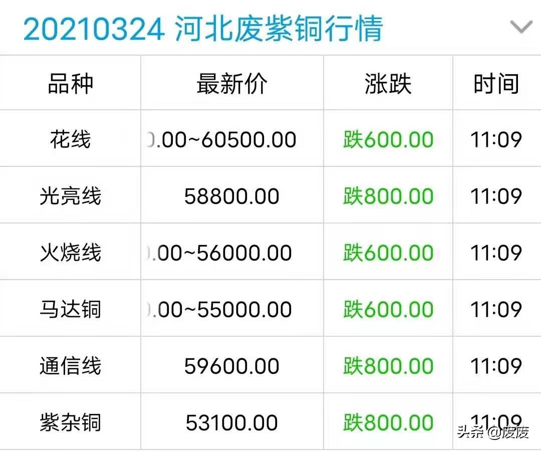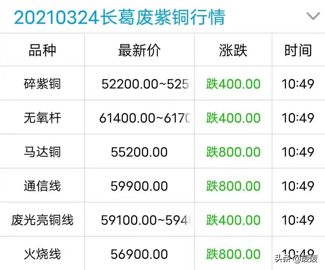废废|废紫铜价格翻绿,最高跌800元\吨