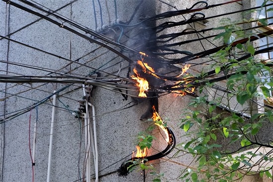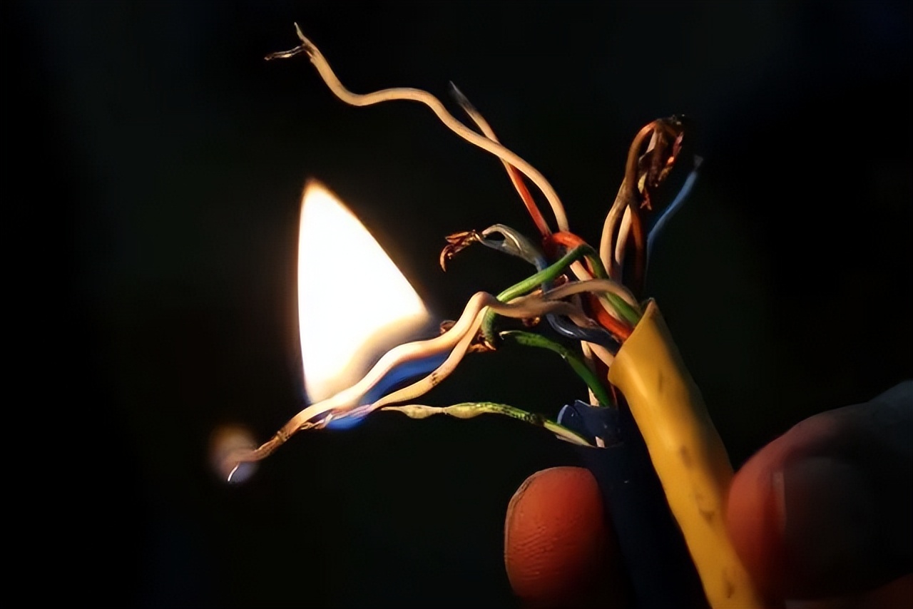 如图所示空气开关下面的导线起火了,可是空气开关并没有跳闸,是空气开关坏了吗?相信很多朋友都有这个疑问,因为在大多数朋友的心里,都会认为电线起火肯定是电流太大造成的,而空气开关有过载保护会立即跳闸,这种理解其实是比较片面的。