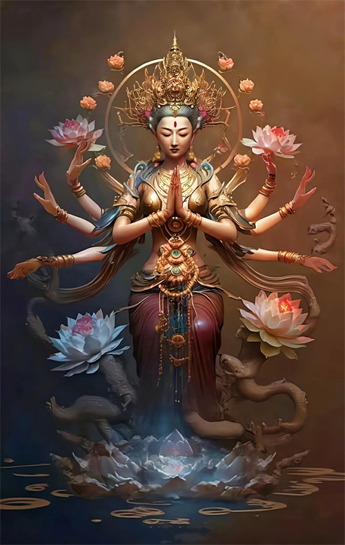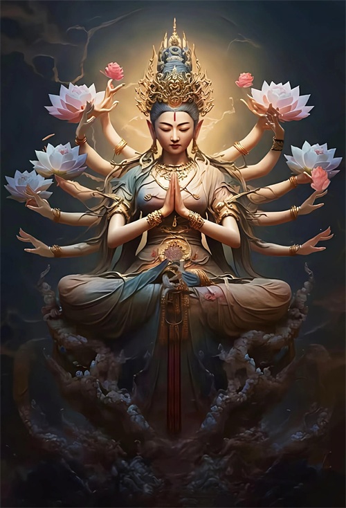千手观音菩萨超清壁纸,佛文化渲染图!